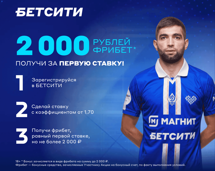 | 2 000 за ставку в клубе БЕТСИТИ | В клубах | 2000 ₽ | 23.09.2024–31.12.2026 |