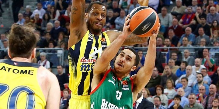 Действующий чемпион Евролиги «Фенербахче» обыграл на выезде «Басконию» — 92:83 (25:19, 23:13, 24:30, 20:21) в четвертом четвертьфинальном матче плей-офф турнира и вышел в Финал четырех. Счет в серии стал 3:1.