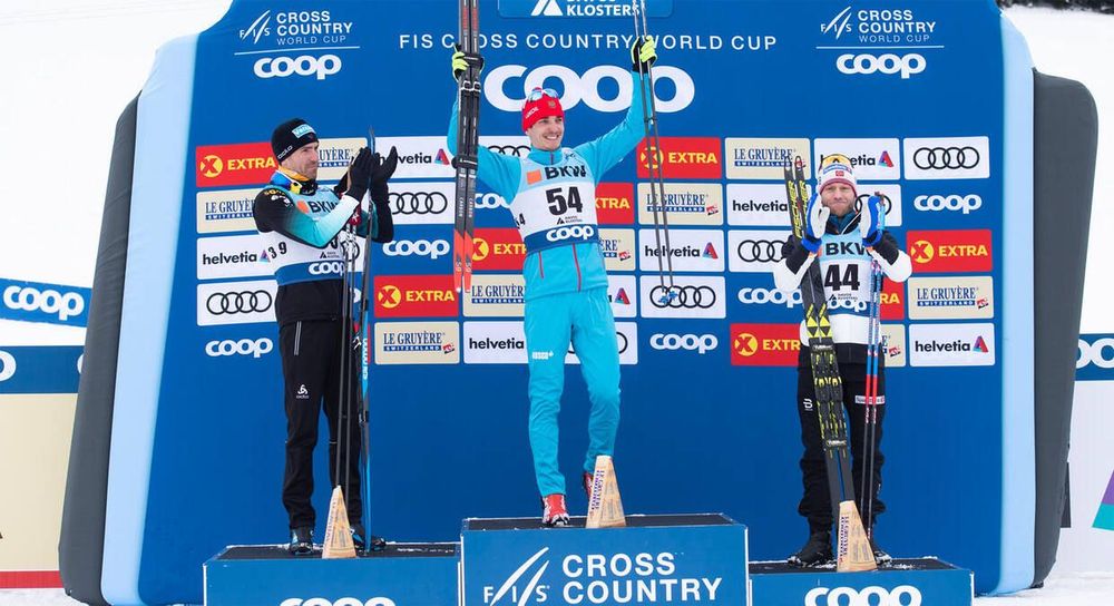 Россиянин Евгений Белов выиграл индивидуальную гонку на 15 км свободным стилем на этапе Кубка мира в швейцарском Давосе.